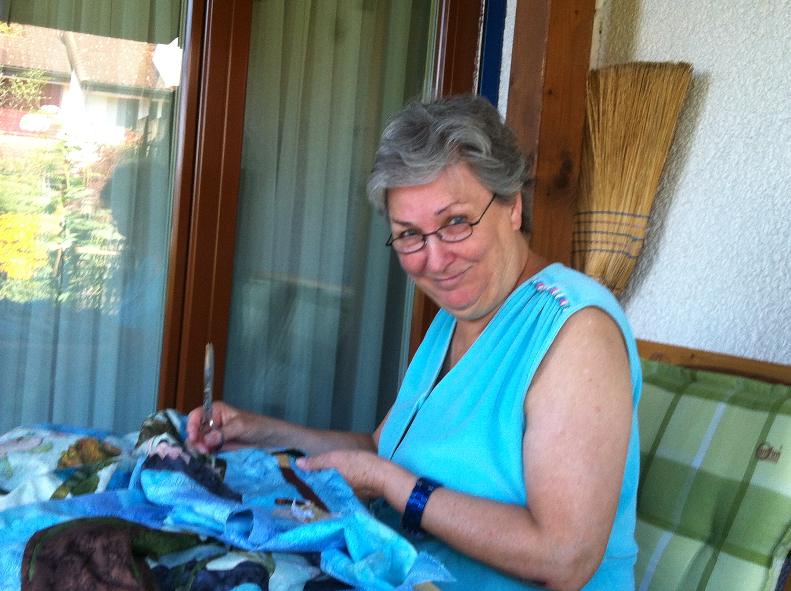 fast jede freie Minute mit meinem Hobby. Wenn das Wetter mitspielt, quilte